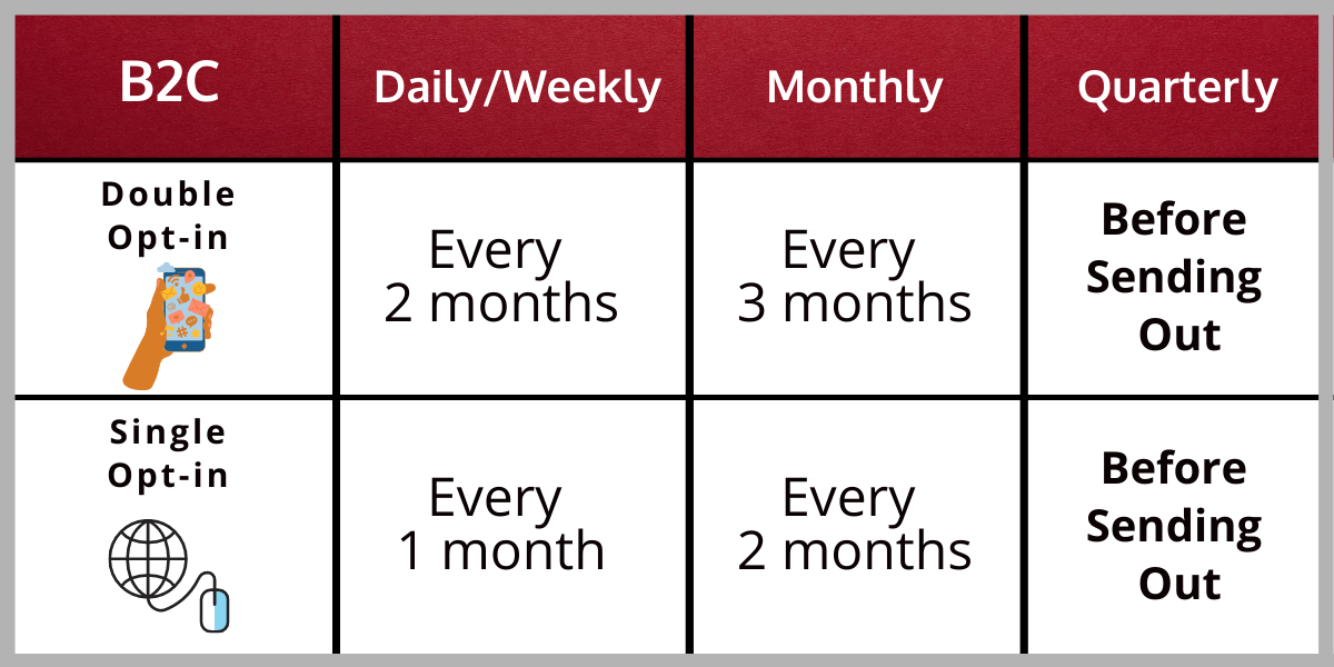 You will need to decide how frequently you will scrub your email list depending on your campaign.